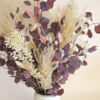 Der Eucalyptus Blush ist ein handgebundener Trockenblumenstrauss in zarten Rosé, Creme und Grüntönen. Dunkelrote Eukalyptusblätter treffen auf flauschige Lagurus und feine Gräser, eine harmonische Kombination, die Leichtigkeit und Wärme ausstrahlt.