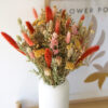 Unser Sunblush Strauss ist eine Interpretation der sanfteren Seite des Herbstes. Dieser handgebundene Trockenblumenstrauss verzaubert mit einer harmonischen Komposition aus pastelligen Orange-, Gelb-, Rosé- und Cremetönen, angereichert mit zarten Grüntönen. Er erinnert an das weiche, warme Licht der Herbstsonne. Ein Strauss, der die Melancholie der Jahreszeit in eine zarte, hoffnungsvolle Eleganz übersetzt.