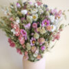 Unser Symphonie Strauss ist ein meisterhaft komponiertes Arrangement, das die ganze Schönheit der Natur in einer ausgewogenen Farbkomposition vereint. Dieser handgebundene Trockenblumenstrauss spielt mit einer harmonischen Palette aus warmen Beige-, sanften Rosé- und natürlichen Grüntönen – wie eine sinfonische Darbietung der Jahreszeiten in Blütenform.
