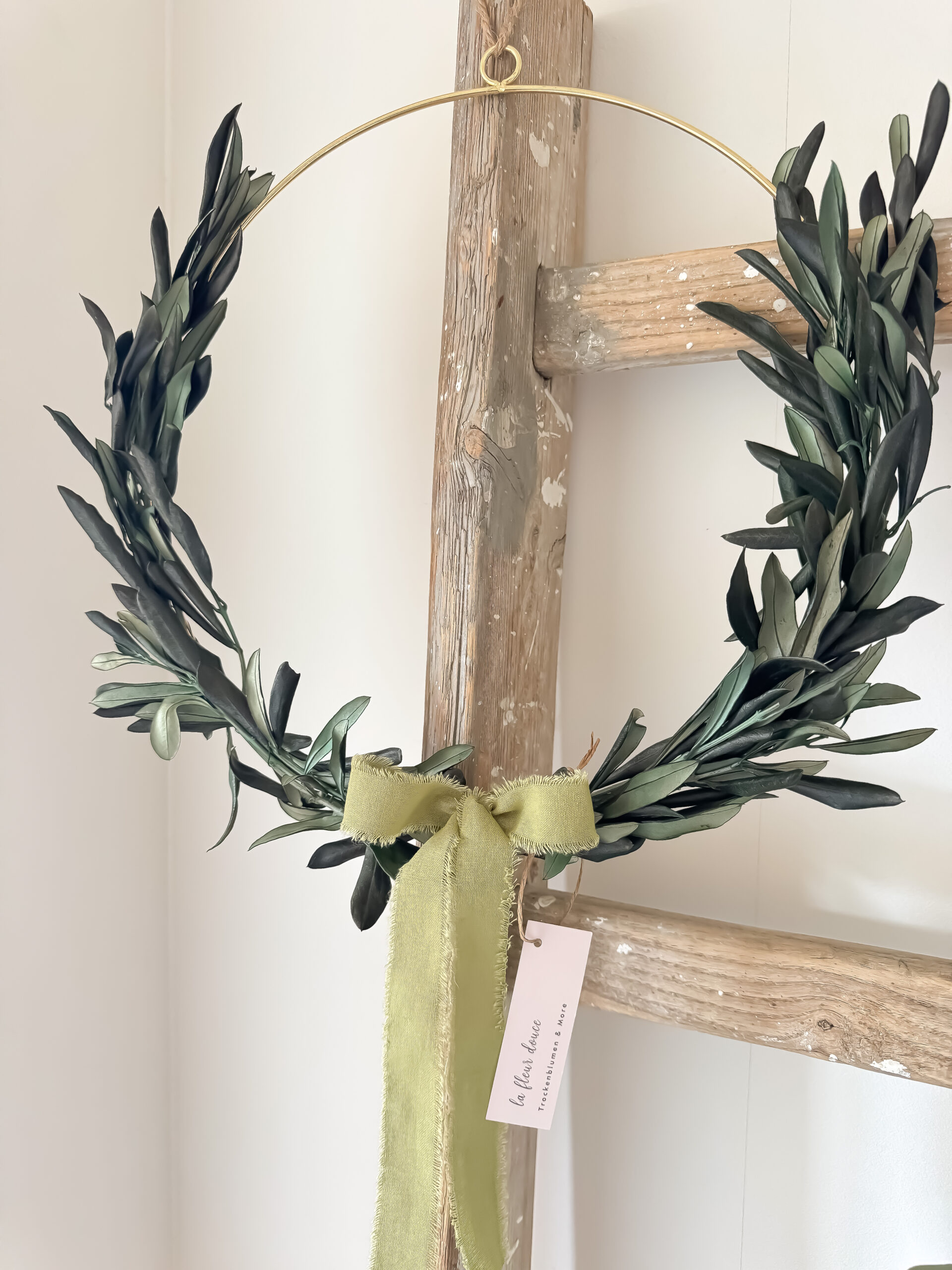 • Material: Goldfarbener Metallring, getrocknete Olivenzweige