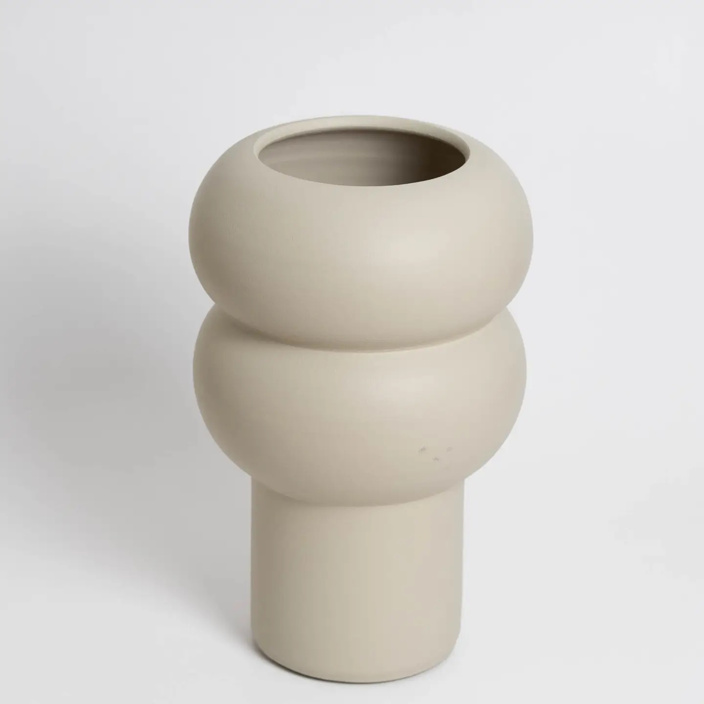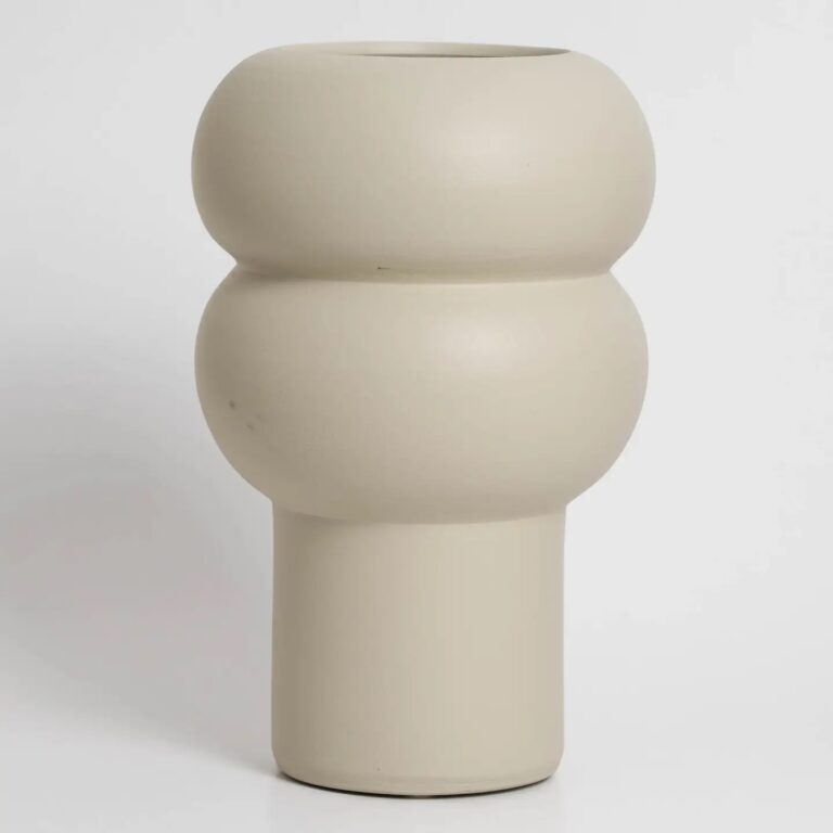 Die in Portugal handgefertigte Vase Ripple vereint minimalistisches Design mit hochwertiger Handwerkskunst. Ihre runde Form und die elegante Off-White matte Keramikoberfläche machen sie zu einem zeitlosen Blickfang, ob mit Trockenblumen, frischen Blumen oder als dekoratives Einzelstück.