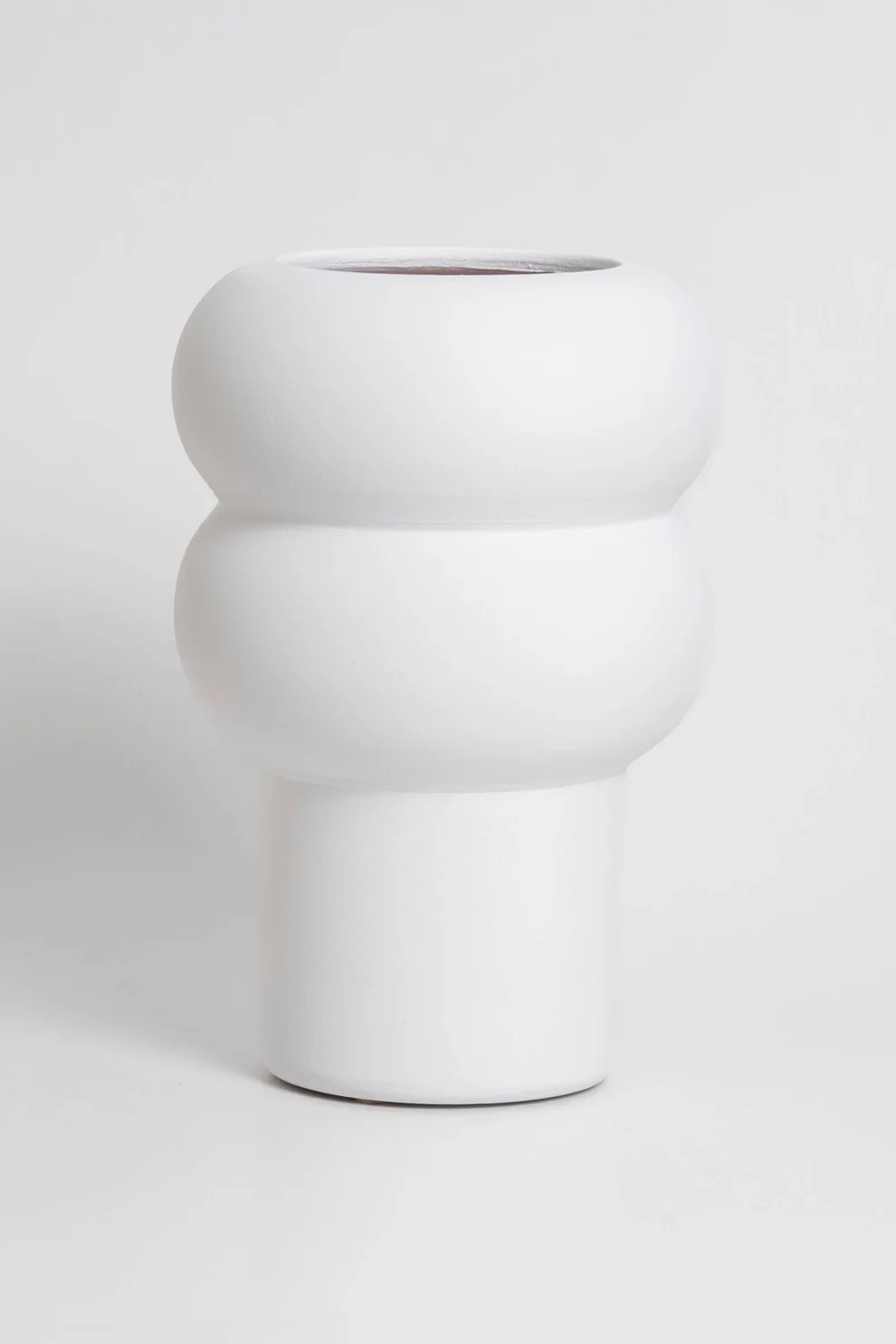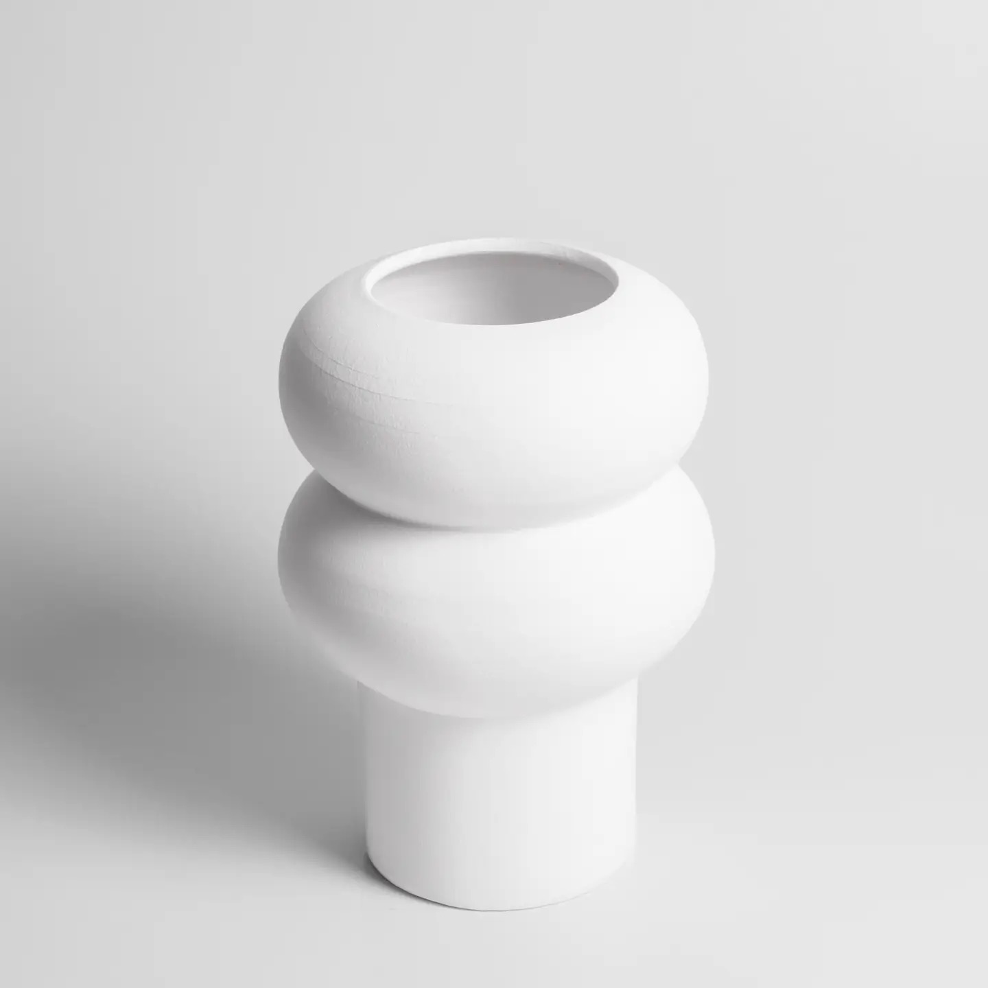 Die in Portugal handgefertigte Vase Ripple vereint minimalistisches Design mit hochwertiger Handwerkskunst. Ihre runde Form und die elegante weisse matte Keramikoberfläche machen sie zu einem zeitlosen Blickfang, ob mit Trockenblumen, frischen Blumen oder als dekoratives Einzelstück.