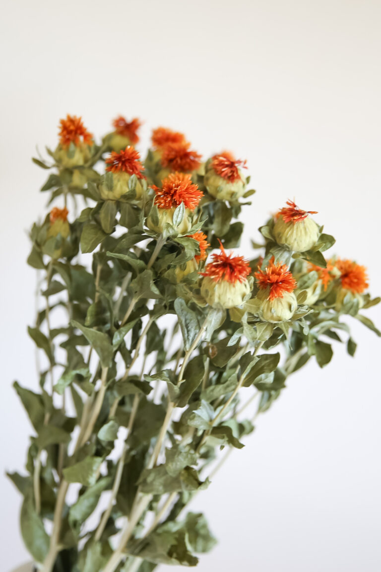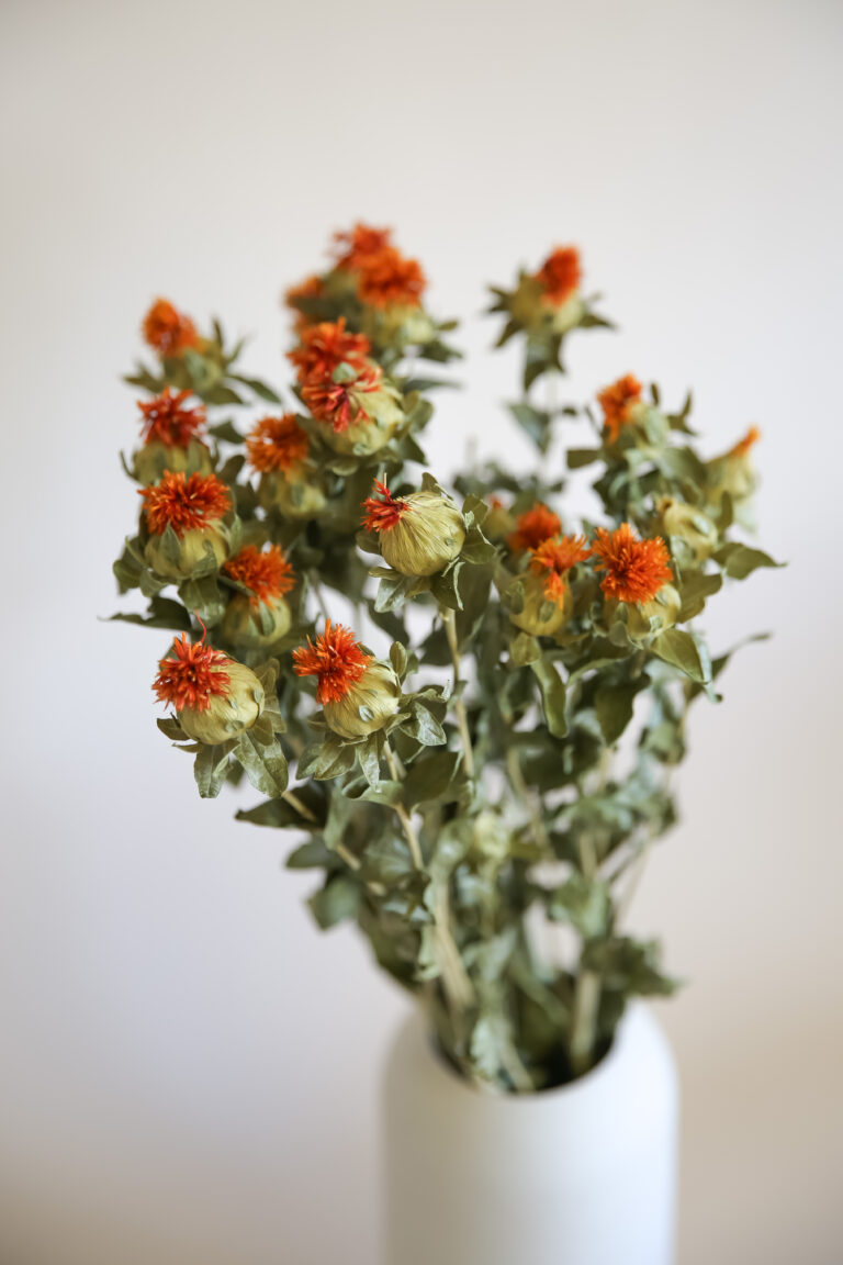 Die Färberdistel, auch als Carthamus tinctorius bekannt, begeistert mit ihren leuchtend orange Blüten und bringt einen Hauch von Exotik in jedes Zuhause. Diese langlebige Trockenblume eignet sich hervorragend für stilvolle Arrangements, als Einzelblumen oder für Trockensträusse. Ideal, um deinem Raum natürliche Farben und einen einzigartigen Charme zu verleihen. Perfekt für kreative Dekorationen und florale Akzente, die sowohl modern als auch zeitlos wirken.
