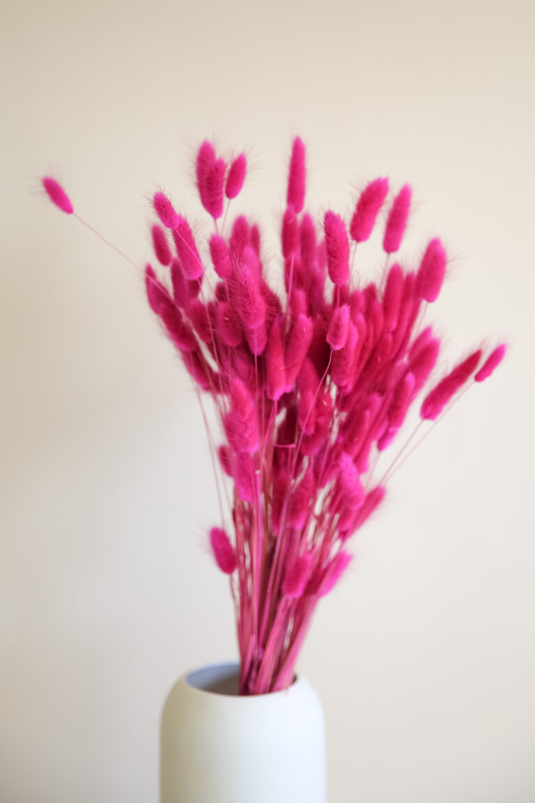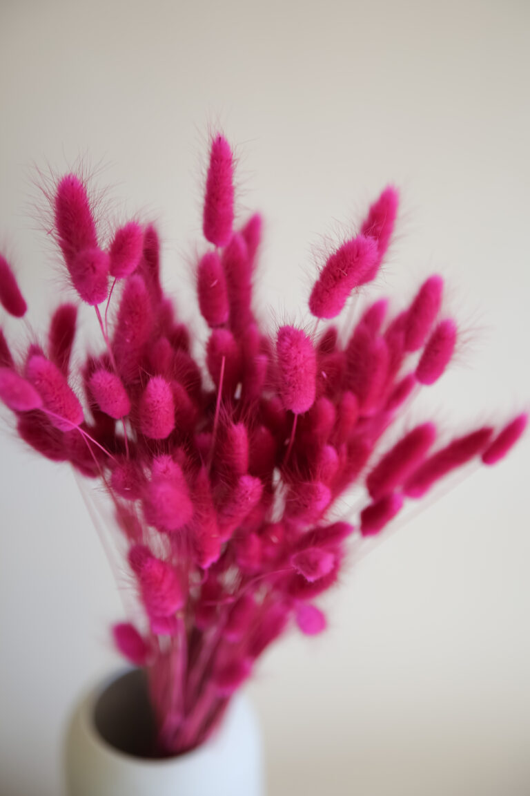 Unser Samtgras in kräftigem Pink ist ein echter Hingucker. Die intensiven Farbtöne bringen Energie und Frische in jedes Trockenblumenarrangement. Die samtige Oberfläche der Halme sorgt für eine elegante, weiche Optik, ideal für moderne Bouquets, mutige Farbkombinationen oder als Statement Piece in deiner Vase.