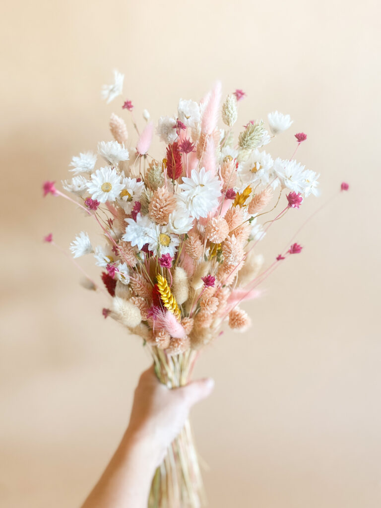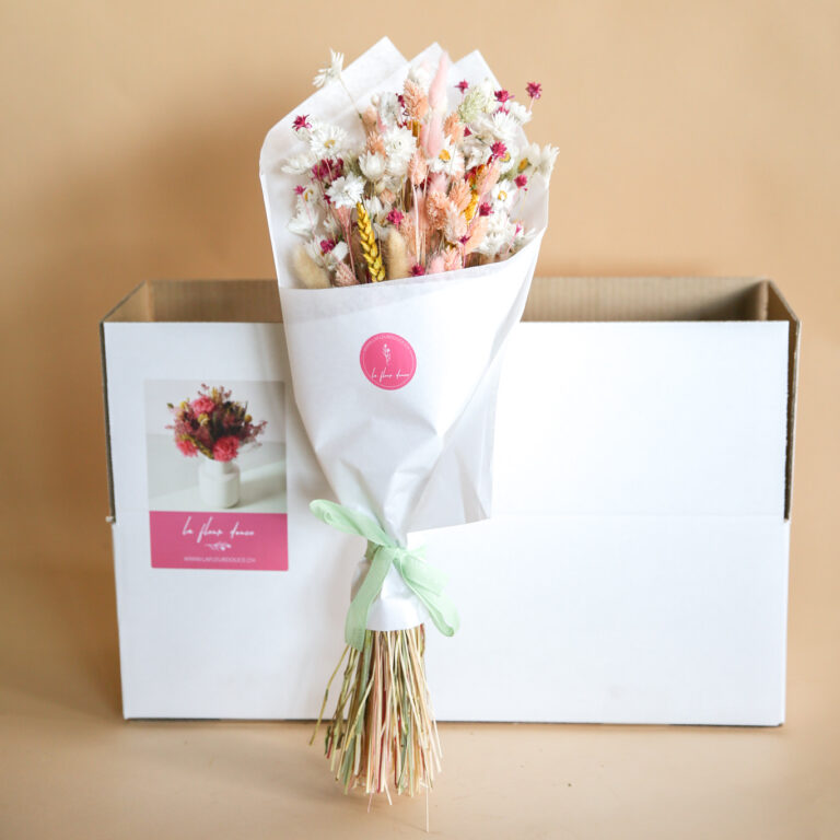 Die ideale Kombination, unsere Vase Fleur Douce und Strauss Bisous aus Trockenblumen ist wie frisch gepflückt. Wunderbare Farben wie rose, weiss und nature treffen aufeinander. Die pinken Tupfen der Batao Blumen bringen das gewisse Etwas in den Strauss.