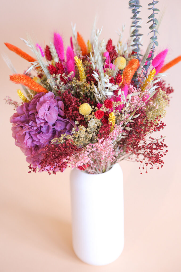 Das absolute Highlight: Unsere weisse Vase Fleur Douce und der wunderschöne Trockenblumenstrauss Fleur Douce mit seinen pinken und roten Akzenten passen perfekt zusammen. Das Set aus Vase und Trockenblumenstrauss ist ideal zum Verschenken oder als Deko Element für die eigene Wohnung.