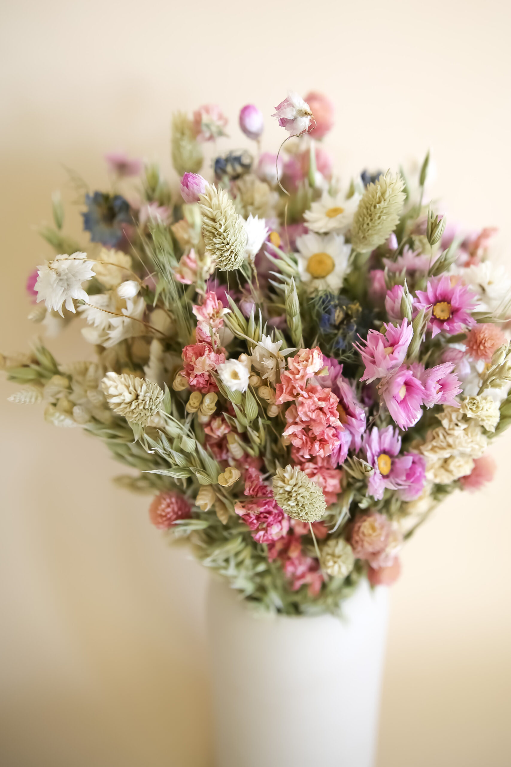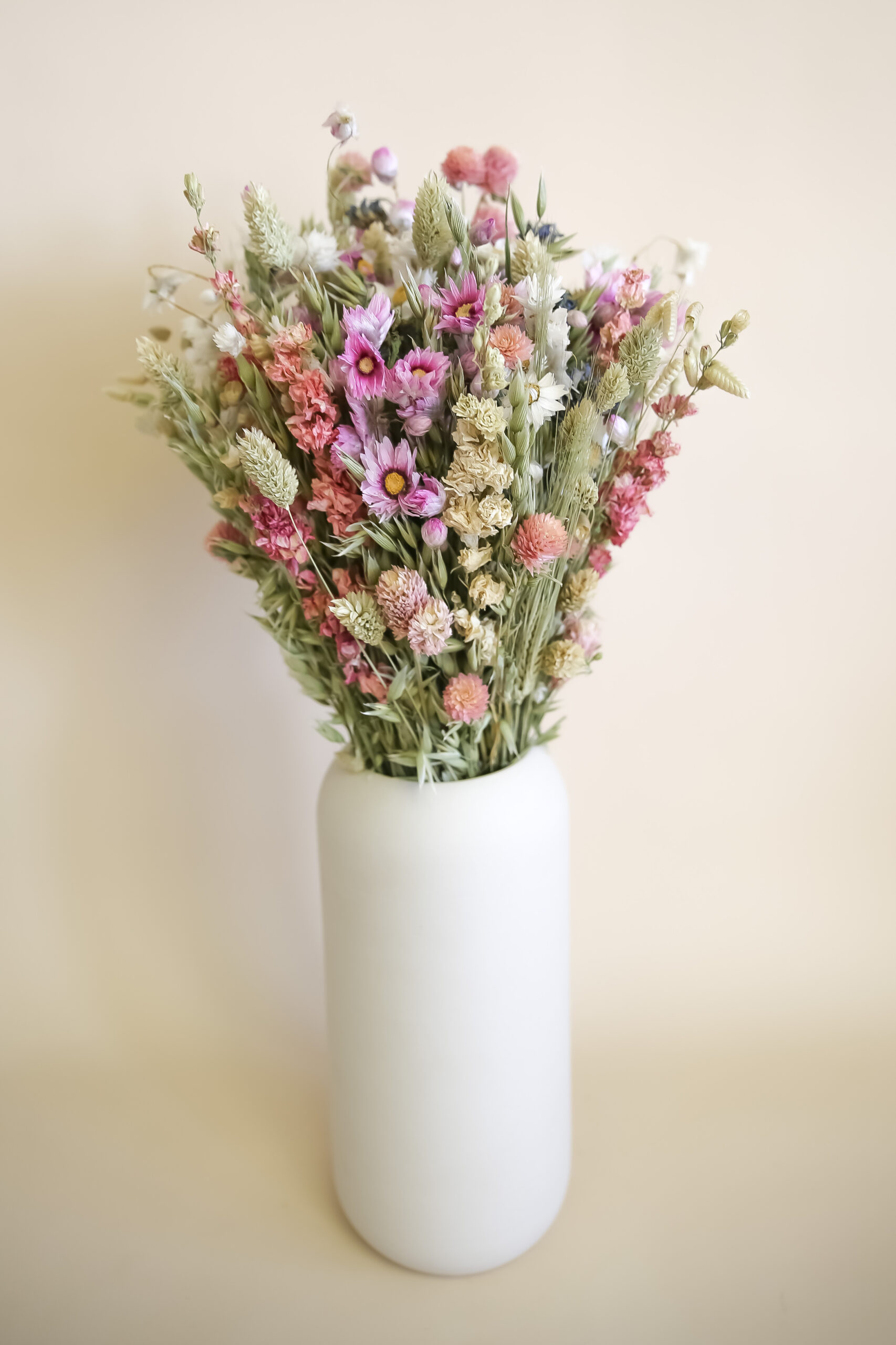 Die ideale Kombination für die sonnigen Tagen: Unsere weisse Vase “Fleur Douce” und der Trockenblumenstrauss “Symphonie” mit seinen natürlichen Farben passen perfekt zusammen. Das Set aus Vase und Trockenblumenstrauss ist ideal zum Verschenken oder als Deko Element für die eigene Wohnung.
