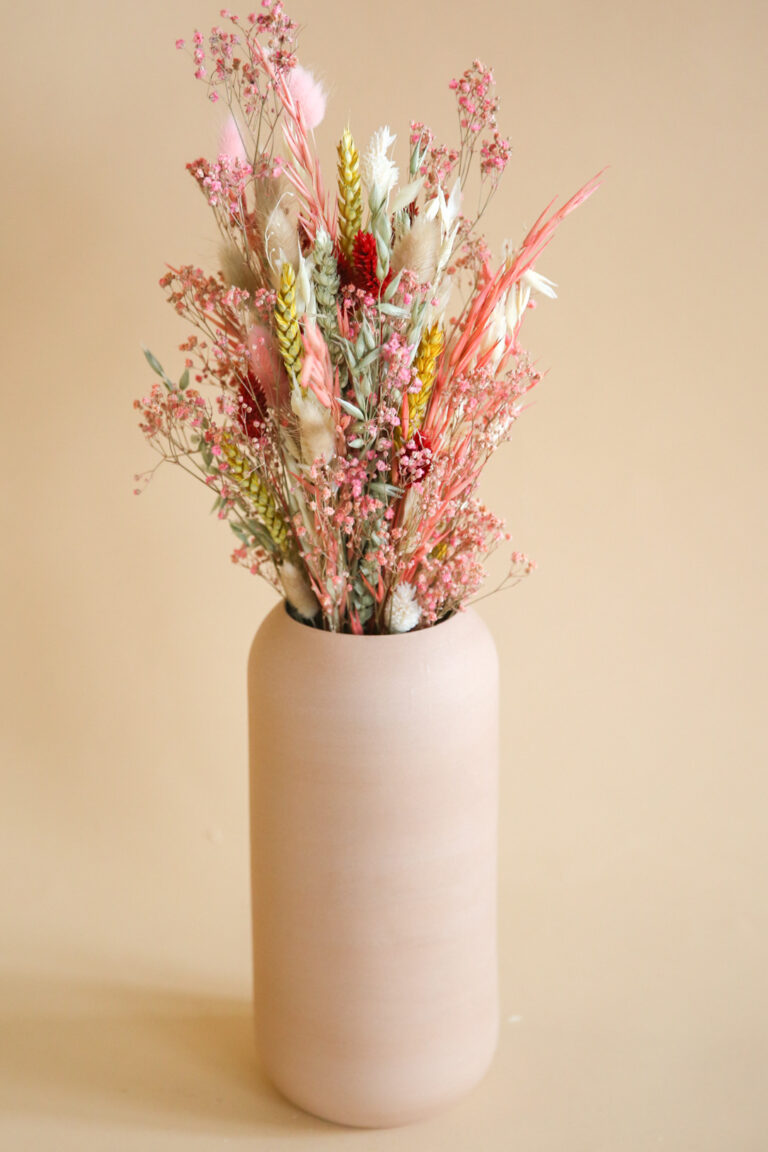 Die ideale Kombination für die sonnigen Tagen: Vase Terracotta und der Trockenblumenstrauss Harmony mit seinen fröhlichen Farben rot, gelb und rosa passen perfekt zusammen. Das Set aus Vase und Trockenblumenstrauss ist ideal zum Verschenken oder als Deko Element für die eigene Wohnung.